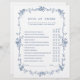 Elegant Victorian French blue floral 'Over or Under' bridal shower game with custom text on the back. For more advanced customisation of this design, please click the DESIGN TOOL BUTTON above!