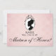 A pretty 60s style silhouette cameo on a pale pink distressed backdrop. You can personalise the front and back messages for your wedding party
