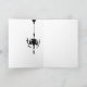 This charming thank you card features the silhouette of a sumptuous chandelier against a vintage damask background. An ornate banner across the top reads "thank you". Another chandelier silhouette, in simple black and white, hangs elegantly on the inside left of the card. On the back of the card, an opened heart locket bears the couple's initials in a charming sort of monogram wedding logo.
