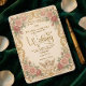 Capture the romance of a bygone era with this vintage Victorian design, featuring delicate roses and classical cherubs for a timeless, romantic aesthetic.This design features a sophisticated composition anchored by a central panel of ivory and cream, surrounded by a printed faux parchment texture that evokes an antique feel. The border is adorned with soft watercolor-style roses in blush pink and dusty rose, complemented by sage green foliage. A symmetrical, ornate frame with scrolling flourishes in a printed faux gold effect encases the text, while a classical illustration of a cherub angel with wings and a delicate heart accent crowns the top. The typography blends an elegant handwritten calligraphy script with traditional serif lettering.This is a flat printed image with a faux gold foil and parchment texture effect, not actual raised metal foil or distressed paper material.