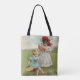These sweet little girls are taking a break to soak their hot feet. This is a beautiful illustration from the late 1800's, when children played in lovely clothing in the garden.