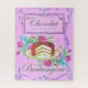 A vintage pastry shop sign featuring a chocolate cake and flowers. In colours of pink and purple.