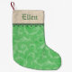 Victorian style stocking with light green swirling vines against a darker green background. Top is a faux cuff in a cream floral design. Personalise in any colour or font you like.