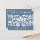 Victorian Floral French Blue Damask Save the Date Announcement Postcard
