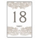 Vintage style victorian floral lace white and taupe design for an old fashioned romantic feel. Table number to compliment invitation set.