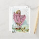 A girl is holding up the edges of her pink dress so that she can carry chicks in it in this Victorian Easter premium card from the 1880's.