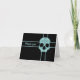 Elegant fanged vampire skull with a damask pattern in it in pale blue on black on a thank you card. Personalise the inside with your own text.