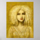 This print shows a beautiful young lady in white with crimped hair in a Victorian Gothic Style. The portrait is set against a golden dappled background.