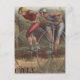 Bike racing! Antique High Wheeler Penny Farthing Bicycles - The illustration was done in the mid-1880s, showing two men in a bicycle race, and wearing brightly coloured racing shirts, red and blue.