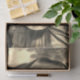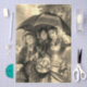 Victorian lady umbrella rainy day sepia tissue paper