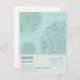 Vintage and modern meet to create a contemporary look on this lovely postcard. A classic Victorian ornament is used as a repeating graphic element against a soft aqua background. Your customizeable information is set off against a lighter panel to create an unforgettable save-the-date magnet. The back is left blank for your own personal message and addressing information. See my store for matching cards, postage and favours. Available in alternative colours.