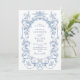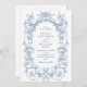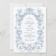 Victorian Ornate Floral Dusty Blue QR code Wedding Invitation