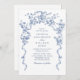 Victorian Ornate Floral Dusty Blue Wedding QR code Invitation