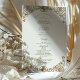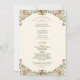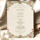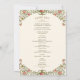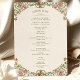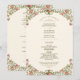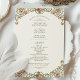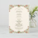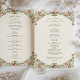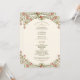 This elegant Victorian wedding program features a grand gold arch adorned with climbing vines of pink roses and delicate greenery. The intricate floral details and classic column design exude timeless sophistication and romantic charm. Perfect for couples seeking vintage-inspired wedding stationery with a luxurious aesthetic and a touch of floral elegance.