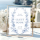 Blue Flower Ornate Victorian Grace Guestbook Sign Poster.