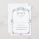 Stylish editable easy to use wedding templates, more items (invitations, rsvp, thank you cards, stationery & decor) with the same design are available in the store. For further customisation, please click the "Personalise this template", then "Edit using Design Tool". Elegant Vintage Blue French Garden Floral Wedding RSVP Card.