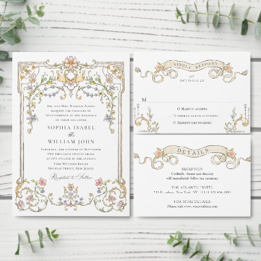 Victorian Ornate Grace Floral Frame Wedding Invitation