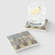 The coasters are gorgeous, a quality feel and heavy weight. They look like a precious archeological find. A rustic stone juxtaposed with a modern floral black and white print. I like the way the print goes slightly imperfect on the cut stone edges giving them a kind-of natural beauty.