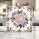 Victorian Peony Bouquet with Gold Scrollwork Ceramic Tile