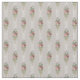 Pretty Victorian pattern featuring clusters of pink and gold flowers and green foliage on vertical bands of elegant white floral lace with subtle beading pattern on grey background.