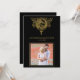 VERTICAL - Simple Minimal PHOTO / PICTURE / PIC / IMAGE wedding invitation with a black background and GOLD GLITTER VINTAGE Faux Gold VICTORIAN COIN image with a Roman / Greek style woman sitting on a chair.