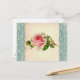 A beautiful Victorian rose illustration from a calling card is set on an aged background with an aqua or turquoise damask border. A beautiful shabby chic or vintage design for the feminine, yet elegant, girly girl!