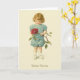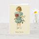 Vintage / Victorian Birthday greeting card. Adorable little girl with a giant red rose! Birthday Greetings!