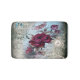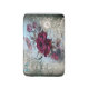Lovely, vintage, red rose florals on newspaper print, featuring a faux pearl brooch and necklace, birdcage with teal bow to create a luxury, extravagant, victorian chic style for beautiful bath decor.