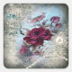 Lovely, vintage, red rose florals on newspaper print, featuring a faux pearl brooch and necklace, birdcage with teal bow to create a luxury, extravagant, romantic style for her invitations.