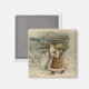 Early cards of vintage Santa showed Santa in brown, green and red suits in the late 1800s. This card says "A Merry Christmas" -- and even though our Santa is wearing a brown suit, after all, he deserves a bit of a wardrobe change now and then! He's carrying a bright new drum in his package. I wonder what else santa has in hs toy bag?