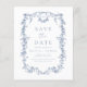 Announce your special day with a Victorian-inspired floral save the date in elegant dusty blue. This French-inspired design features intricate floral patterns that evoke timeless romance and sophistication. The soft dusty blue colour adds a serene and refined touch, perfect for setting the tone of a classic and elegant wedding. Ideal for couples seeking a graceful yet unique style, this save the date blends vintage charm with modern beauty, ensuring your guests anticipate a truly special celebration.
