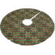 Stylish holiday tree skirt with festive antique inspired design featuring dark green & burgundy striped background with gold snowflake pattern overlay.