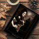 A victorian vampire with a single blood red tear as her werewolf portrait painting sits in behind her. Lost love.