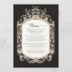 CHARCOAL JET BLACK & GOLD, FORMAL DINNER MENU FOR WEDDING RECEPTION OR BRIDAL SHOWER. Classic and fabulously ornate, golden dimensional look, Victorian baroque rococo frame over an elegant vintage tone-on-tone damask pattern in black and white that was graphically designed by internationally licensed artist, Audrey Jeanne Roberts ©