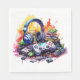Birthday party paper napkins. Red, blue, yellow and green. Ai watercolor illustration of headphones, video game controller and other gaming accessories.