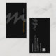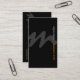 This elegant bold script video editor business card features a large bold script dark grey monogram right in the middle of the card over a black background. Your name and title appear vertically on the right edge of the card in orange and white. Your other contact details including your business logo appear on the back of the card. The back of the card also features a smaller monogram letter in the same script font. Perfect for photography, videography, photo, video, imaging, artistic themes.