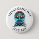 July 8th is Video Game Day. Funny alien playing video games in a pixel art form.
