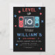 Level up to 10! This video game themed birthday invitation features a game console at the center, set against a sleek black inspired background for a bold, modern gamer look. Perfect for young players ready to celebrate their next big level.
