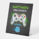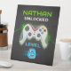 This video game themed table sign is designed with a bold game controller, neon accents, and retro gaming vibes, it's ideal for kids, boys, and teens who love to level up in style. Whether you're celebrating a birthday or a gaming achievement, this sign adds a fun, trendy touch to your party decor. Place it on any surface or table to let everyone know the gamer has officially unlocked their next level! A must-have for any gaming or video game birthday party.