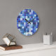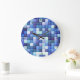 Video Game Pixels Blue Square Pattern Large Clock