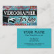 Colourful arty Videographer business cards in turquoise, aqua, red, yellow. Videographer for hire business cards.