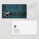 This simple and dark themed videographer business card features a chrome icon of a video camera enclosed within a chrome circle. Your business name and text/tagline appear within a black text panel strip that runs from the icon from the left towards the right edge of the card. The background of the card consists of a dark themed grunge pattern. Your contact details appear on the lower left on the back of the card. Perfect for photography, imaging, video, filming, professional, impact, dark themes.