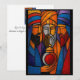 Celebra el espíritu de la Epifanía con esta obra vibrante en estilo vitral que representa a los Tres Reyes Magos. Con líneas audaces y tonos joya—azul real, naranja ardiente y púrpura profundo—cada figura lleva regalos simbólicos en una interpretación moderna del Nacimiento. Perfecto para decoración navideña, regalos religiosos o colecciones culturales. Ideal para impresiones, tarjetas, ropa y señalización estacional.