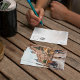 We got these postcards of places with all of our travels for people to send out notes at our wedding! .