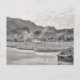 This postcard features a duotone photo of a landscape of from a villiage called Mai Chau in northern Vietnam. The photo captures a beautiful mountain, rice fields and lake with a hut and rays off sunlight hitting the ground.