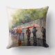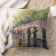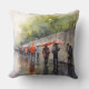This throw pillow is decorated with a sombre rainy day watercolor painting of the Vietnam Memorial.