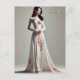 Woman is wearing an Ao Dai, a long, flowing tunic elegantly fitted to her frame, with high slits on both sides. The Ao Dai is made of delicate fabric, adorned with intricate floral patterns and vibrant colours, symbolising cultural heritage and grace. Beneath the tunic, she wears loose-fitting pants that complement the outfit's elegance. Her posture exudes confidence and poise, and the light plain background emphasizes her beauty and the sophistication of the traditional Vietnamese attire.