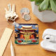 Vietnamese golden Dragon paper-cut in front of a temple in Origami style. Design on square keychain with golden handwriting "Year of the Dragon" in front and Monogram to customise in back. Matching greeting card, holiday postcard, sticker and mug. Perfect for Vietnamese New Year of the Dragon 2024.