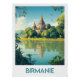 Illustration of a majestic golden pagoda in Burma, surrounded by lush jungle and reflected in a calm river. A scene marked by spirituality and nature. Perfect as a Zen wall or travel poster.