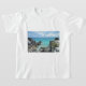 100% cotton so perfect for summer, It is a nicely designed t-shirt, the fabric is soft and the seams finished well, the body of the t shirt has no side seams. I bought a medium size for my two grandsons, aged 9 and 8 it will be slightly big on them but I would rather that than too small
